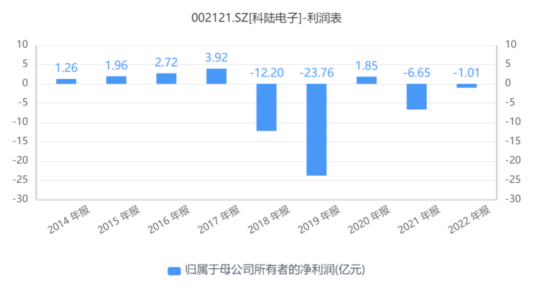 探究科陸電子的發(fā)展歷程,自1996年成立以來(lái),在2018年前一直呈現(xiàn)上升趨勢(shì)。從2007年上市初期不足4億元的營(yíng)業(yè)收入,到2017年躍升至近44億元,凈利潤(rùn)也從0.68億元攀升至4.59億元,然而,在2018年和2019年,因擔(dān)保暴雷、資產(chǎn)減值等事項(xiàng),合計(jì)虧損高達(dá)約36億元,致使過(guò)去數(shù)十年的盈利化為烏有,甚至一度瀕臨退市的風(fēng)險(xiǎn)。