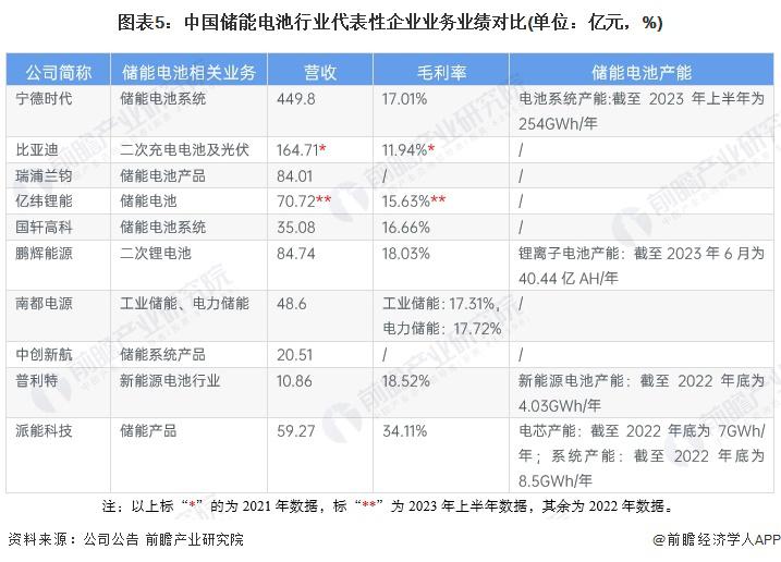 儲能電池行業(yè)代表性企業(yè)業(yè)務業(yè)績情況