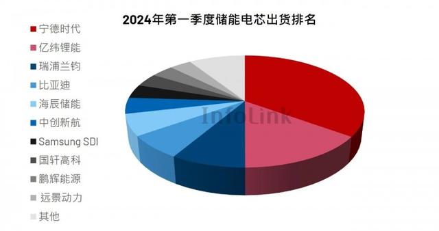 據(jù)InfoLink全球鋰電池供應(yīng)鏈數(shù)據(jù)庫(kù)統(tǒng)計(jì)顯示,2024年第一季度的全球儲(chǔ)能電芯出貨規(guī)模達(dá)38.82GWh,同比下降2.2%,市場(chǎng)表現(xiàn)總體低迷。其中,儲(chǔ)能電芯出貨量Top5企業(yè)分別為寧德時(shí)代、億緯鋰能、瑞浦蘭鈞、比亞迪和海辰儲(chǔ)能。