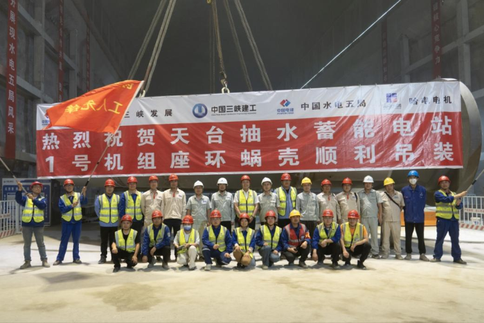 本網(wǎng)訊(李大義)試吊、起升、行走、下降,最后穩(wěn)穩(wěn)落在機坑支墩上……5月16日,浙江天臺抽水蓄能電站1號機組座環(huán)蝸殼完成吊裝工作。據(jù)悉,此次吊裝實現(xiàn)了座環(huán)、蝸殼與蝸殼延伸段在安裝間焊接成整體后一次性吊裝,為國內(nèi)抽水蓄能領(lǐng)域首次開發(fā)并成功使用的創(chuàng)新工法。