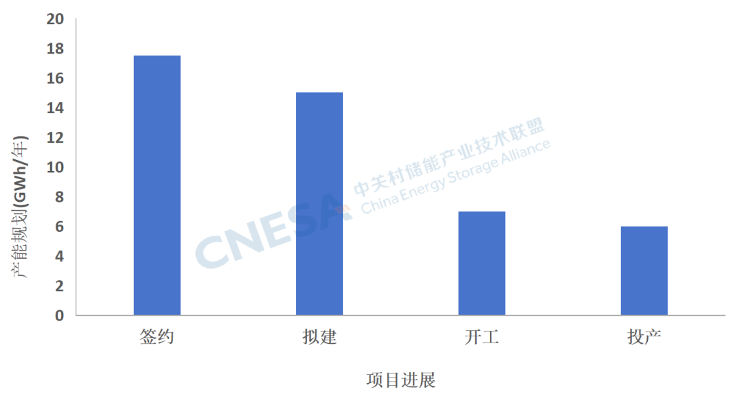 6月份新增產(chǎn)能(含簽約、擬建、開(kāi)工和投產(chǎn))45.5GWh,投資額超過(guò)250億元人民幣。