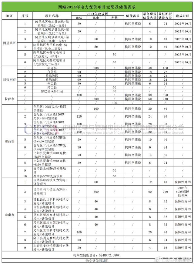 基于此,西藏將新建新能源3GW,明確2024年建成保供光伏1.4GW+構(gòu)網(wǎng)型儲(chǔ)能項(xiàng)目280MW/1120MWh;2024年建成構(gòu)網(wǎng)型獨(dú)立儲(chǔ)能160MW/700MWh;此外,著眼2025、2026年電力保供工作,2025年將建成風(fēng)電1.2GW+構(gòu)網(wǎng)型儲(chǔ)能240MW/960MWh,力爭(zhēng)建成光熱發(fā)電項(xiàng)目400MW。