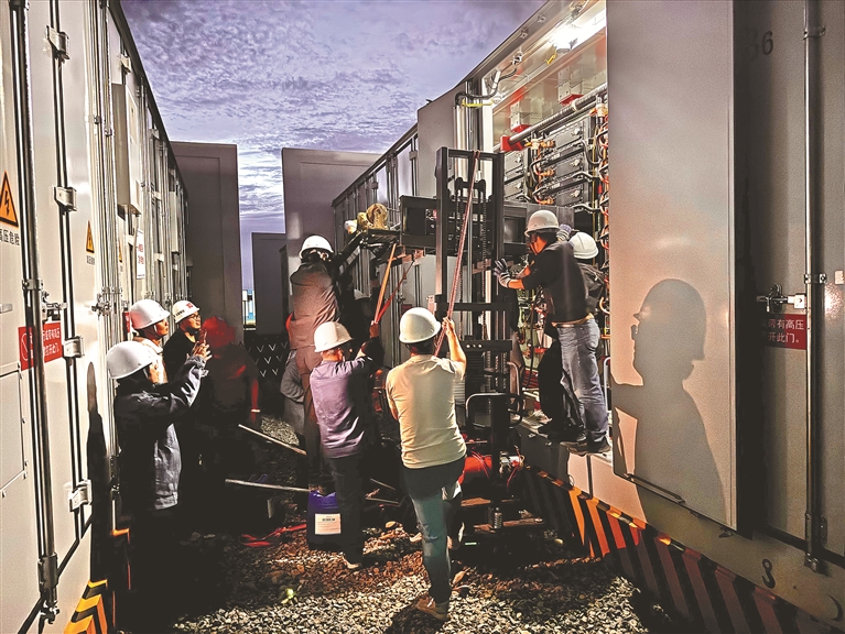 海南州儲(chǔ)能電站的35千伏開關(guān)站綜合預(yù)制艙。(中國華能集團(tuán)供圖)