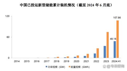 根據(jù)CNESA Data Link全球儲能數(shù)據(jù)庫的不完全統(tǒng)計(jì),截至2024年6月底,中國已投運(yùn)電力儲能項(xiàng)目累計(jì)裝機(jī)規(guī)模103.3GW(包括抽水蓄能、熔融鹽儲熱、新型儲能),同比增長47%,比去年底增長20%。