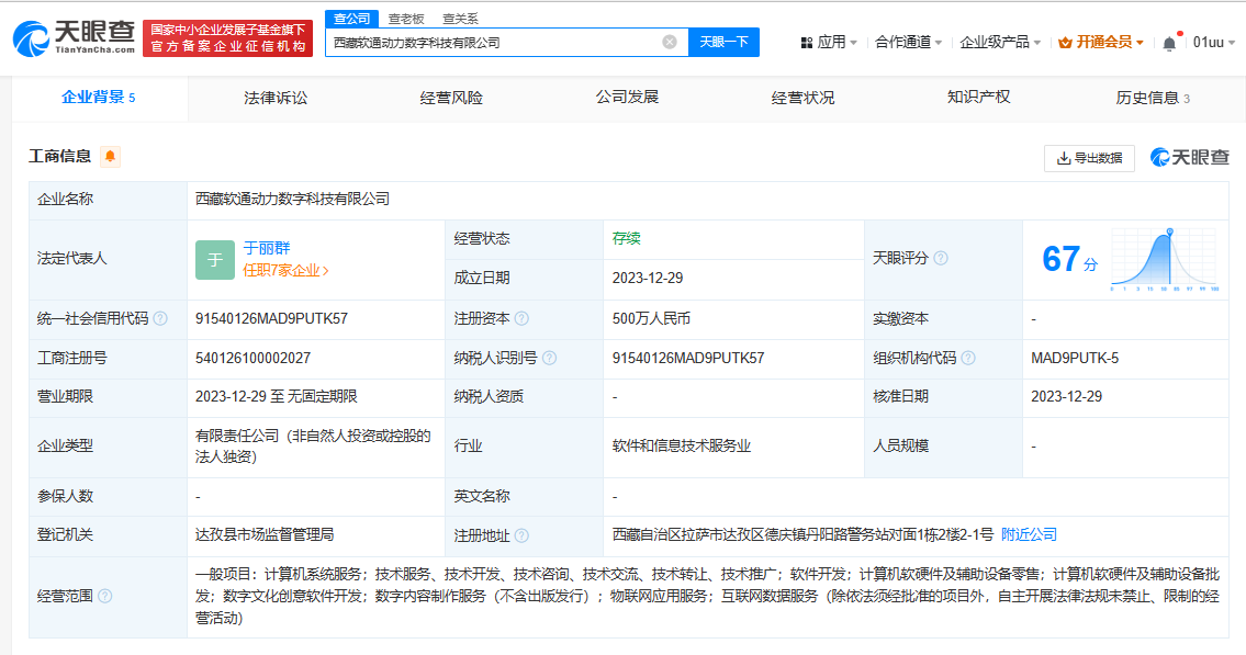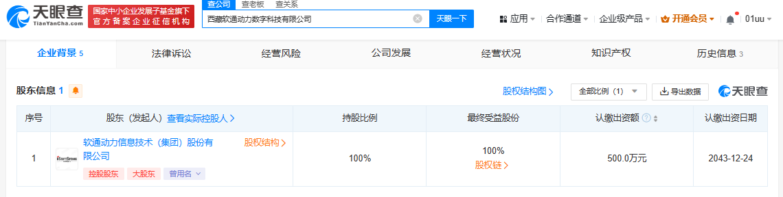 軟通動力在西藏成立數(shù)字科技公司 注冊資本500萬