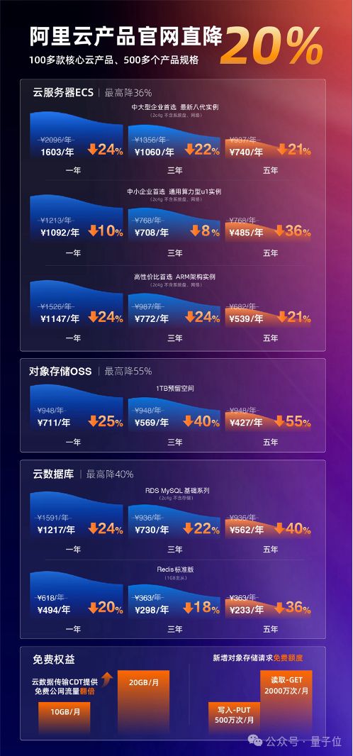 其中,云服務器ECS最高降36%,對象存儲OSS最高降55%,云數(shù)據庫RDS最高降40%。