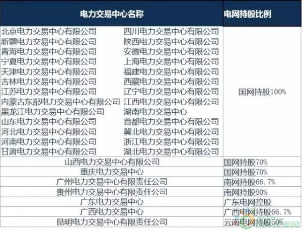 電網(wǎng)公司持股電力交易中心情況