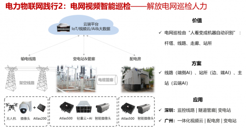 電網(wǎng)視頻智能巡檢:應(yīng)用基于華為昇騰AI芯片的Atlas系列產(chǎn)品方案,匹配桿塔、管廊、站所不同場景,通過對設(shè)備異常、環(huán)境風(fēng)險、人員違規(guī)等的AI識別,將風(fēng)險信息及時傳遞給視頻云中心,做到風(fēng)險及時發(fā)現(xiàn),幫助客戶實(shí)現(xiàn)電網(wǎng)巡檢 “由人看變成機(jī)器自動識別”,解放電網(wǎng)巡檢人力,提高運(yùn)維效率,有效保障電網(wǎng)的安全穩(wěn)定運(yùn)行。