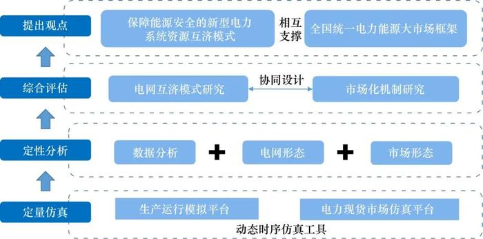 在資源配置模式方面,采取定量仿真、定性分析、綜合評估等方式,根據(jù)生產(chǎn)運(yùn)行模擬平臺、電力現(xiàn)貨市場仿真平臺的結(jié)果,融合電網(wǎng)形態(tài)及市場形態(tài)數(shù)據(jù)分析,論證形成新型能源體系下電網(wǎng)互濟(jì)模式及相應(yīng)的市場支撐機(jī)制,從而構(gòu)建新型電力系統(tǒng)資源互濟(jì)模式、全國統(tǒng)一電力能源大市場框架相互支撐的大范圍共享互濟(jì)體系。