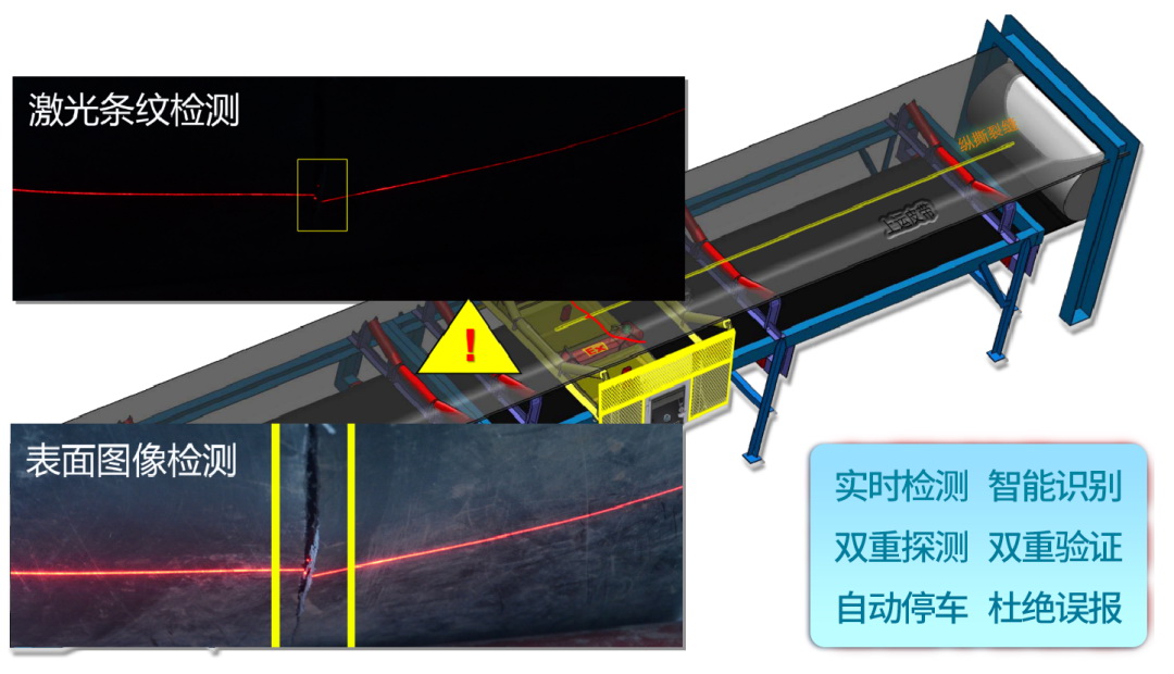 斗輪機操作人員識別驗證采用深度學習算法,支持離線比對,人臉比對時間<0.2s/人,人臉比對準確率≥99%;輸送帶縱向撕裂檢測裝置使用激光束掃描皮帶表面,相機采集圖像信息,獨立鑒定,相互驗證,當兩種手段100%確認了縱向撕裂發(fā)生,系統(tǒng)才進行報警。