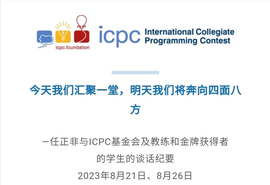 9月19日,國際大學(xué)生程序設(shè)計(jì)競賽(International Collegiate Programming Contest,簡稱ICPC)官網(wǎng)披露了華為創(chuàng)始人兼CEO任正非8月21日、8月26日與ICPC基金會及教練和金牌獲得者的學(xué)生的談話紀(jì)要。