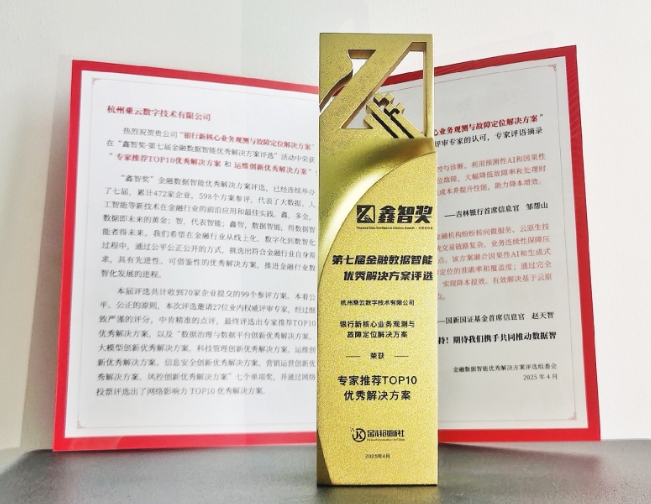 “鑫智獎”作為金融數(shù)據(jù)智能領(lǐng)域的重要獎項,已連續(xù)舉辦七屆,致力于挖掘并推廣金融科技與數(shù)據(jù)智能深度融合的優(yōu)秀成果,彰顯數(shù)據(jù)智能在金融場景中的落地成效和未來潛力。2025年評選活動共計收到來自70家企業(yè)的99個方案參評,經(jīng)過27位專家評審與答辯打分,評選出專家推薦TOP10優(yōu)秀解決方案。乘云數(shù)字此次獲獎的“專家推薦TOP10優(yōu)秀解決方案”,圍繞國內(nèi)銀行新一代核心系統(tǒng)的復雜性面臨的全新運行穩(wěn)定性挑戰(zhàn),在快速的發(fā)現(xiàn)問題、定位問題、處理問題及大模型新技術(shù)的應(yīng)用等方面展現(xiàn)出專業(yè)、系統(tǒng)的技術(shù)優(yōu)勢,獲得專家組高度認可。