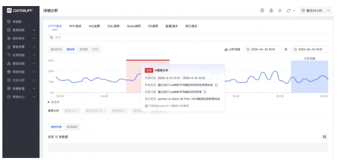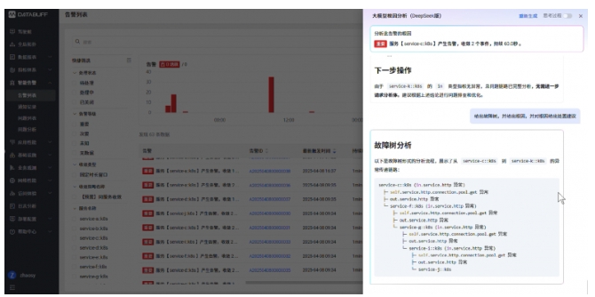 DataBuff 新核心業(yè)務(wù)觀測與故障定位解決方案主要包括三個方面的功能:基于業(yè)務(wù)觀測的用戶旅程分析、基于因果AI的故障定位能力、基于生成式AI的運維自動化能力,以下展開詳細說明:
