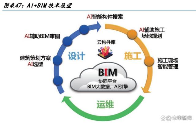BIM 與人工智能深度融合,有望在設(shè)計、施工、運(yùn)維階段開拓應(yīng)用場景與解決方案。 設(shè)計階段:1)構(gòu)件智能搜索:可以在構(gòu)件智能搜索中使用人工智能對構(gòu)件進(jìn)行準(zhǔn)確 的自動分類,以及使用自然語言理解技術(shù)實(shí)現(xiàn)構(gòu)件屬性的智能校準(zhǔn);2)AI 輔助布局 規(guī)劃:融入最新的機(jī)器學(xué)習(xí)技術(shù),可以在瀏覽器上生成建筑策劃文件,并輸出建筑空 間的最優(yōu)化布局;3)AI 輔助 BIM 審圖:AI 技術(shù)可以輔助 BIM 對大量規(guī)范、圖集、標(biāo) 準(zhǔn)以及模型、圖紙的匹配性學(xué)習(xí),做好設(shè)計合規(guī)性、合理性的把控。施工階段:進(jìn)行輔助施工場地規(guī)劃,AI 可以通過場地智能布置和合規(guī)合理性校驗(yàn)來 幫助經(jīng)驗(yàn)不足的技術(shù)人員增質(zhì)提效,通過建模對施工現(xiàn)場不同階段的復(fù)雜狀態(tài)進(jìn)行模 擬展示,通過數(shù)據(jù)分析及時反饋前期方案的合理性,同時反向指導(dǎo)施工組織設(shè)計,進(jìn) 行資源配置優(yōu)化。 運(yùn)維階段:進(jìn)行運(yùn)維智能管理,AI 可以通過機(jī)器人和無人機(jī)等的應(yīng)用,使用大量實(shí) 際現(xiàn)場視頻數(shù)據(jù)進(jìn)行訓(xùn)練,對現(xiàn)場數(shù)據(jù)進(jìn)行分類處理和智能管理,大幅提升施工效率 和安全質(zhì)量水準(zhǔn)。