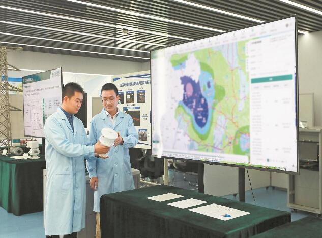 江蘇電科院?jiǎn)T工在江蘇電網(wǎng)防災(zāi)減災(zāi)中心探討持續(xù)性強(qiáng)降雨對(duì)城市電網(wǎng)設(shè)備的影響。孫婷 攝