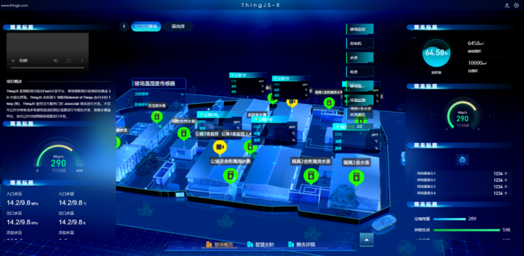 ThingJS-X4還配套了隨取隨用的數(shù)字孿生Demo,涵蓋園區(qū)、城市、水利、醫(yī)院、機(jī)房、校園、地鐵、風(fēng)電等多個(gè)行業(yè),均來自實(shí)際項(xiàng)目交付案例,并提供講解腳本和配置說明書,用戶按部就班即可完成案例講解和項(xiàng)目交付。