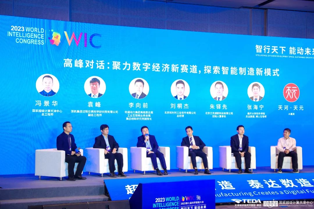 高峰對話環(huán)節(jié)由國家超級計算天津中心總工程師馮景華主持,圍繞“聚力數(shù)字經(jīng)濟新賽道,探索智能制造新模式”主題展開探討。國機集團沈陽儀表科學研究院有限公司副總工程師袁峰;軟通動力集團高級副總裁,工業(yè)互聯(lián)網(wǎng)業(yè)務總裁,集團創(chuàng)新研究院副院長、李向前;北京和利時工業(yè)軟件有限公司總經(jīng)理、劉桐杰;北京蘭光創(chuàng)新科技有限公司創(chuàng)始人、董事長,朱鐸先;南開大學軟件學院、杰出教授、博士生導師、張海寧;以及神秘的 AI 嘉賓-天河·天元,現(xiàn)場共話智能制造新模式,推動數(shù)字經(jīng)濟發(fā)展。