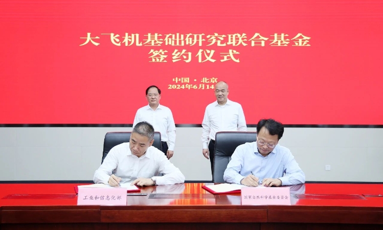 6月14日,工業(yè)和信息化部、國(guó)家自然科學(xué)基金委員會(huì)簽署合作協(xié)議,共同設(shè)立大飛機(jī)基礎(chǔ)研究聯(lián)合基金。工業(yè)和信息化部黨組書記、部長(zhǎng)金壯龍,國(guó)家自然科學(xué)基金委員會(huì)黨組書記、主任竇賢康,工業(yè)和信息化部黨組成員、副部長(zhǎng)辛國(guó)斌,國(guó)家自然科學(xué)基金委員會(huì)黨組成員、副主任王希勤出席活動(dòng)。