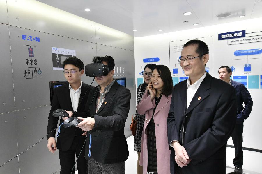 佩戴VR眼鏡即可揭開(kāi)智能配電房神秘的面紗,享受沉浸式的觀影體驗(yàn);在書(shū)房通過(guò)手指觸動(dòng)“跳一跳”游戲即可身臨其境體驗(yàn)一度電的使用過(guò)程......這些以往只能在腦海里幻想的場(chǎng)景,如今變得可觀可感。