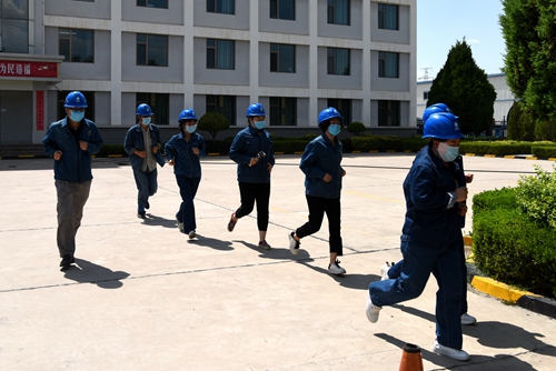 警報(bào)拉響后,來(lái)自來(lái)該廠的6個(gè)分場(chǎng)、3個(gè)部門(mén)的的職工迅速組織成應(yīng)急搶險(xiǎn)隊(duì)伍,向應(yīng)急指揮中心院內(nèi)集結(jié)。同時(shí),該廠非生產(chǎn)區(qū)域辦公樓的工作人員也沖出辦公場(chǎng)所,向應(yīng)急疏散避難場(chǎng)所內(nèi)緊急集結(jié)。