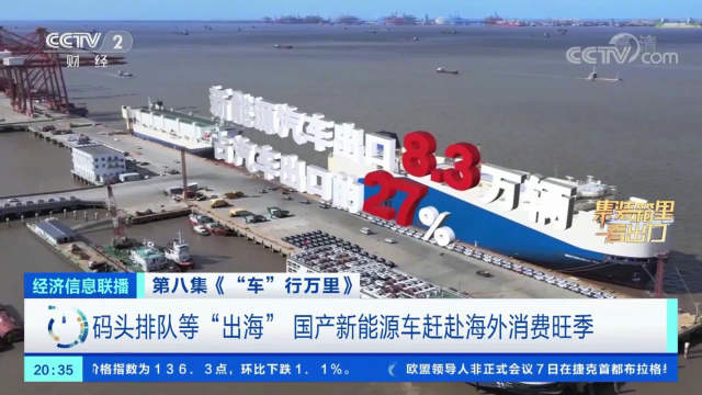 上海港的海通滾裝碼頭被稱為“汽車之港”,每天進出港的車超過四千輛。記者在這里看到,隨著滾裝船緩緩地靠港,2000輛新能源車開始進入待裝位置,排起長隊,整裝待發(fā),它們即將發(fā)往世界各地。