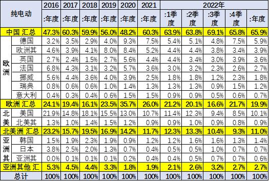此處具體分析特意不包含商用車市場(chǎng)分析,主要是世界新能源的卡車與客車主要銷量基本在中國(guó),而且疫情后新能源客車處于萎縮中,雖然增大一點(diǎn)中國(guó)份額,但容易誤導(dǎo)趨勢(shì)的分析,意義不大,因此此文第二部分開始的分析只包含乘用車。