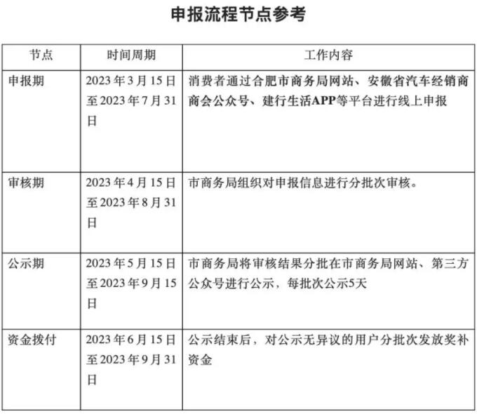 記者從合肥市人民政府獲悉,為貫徹落實(shí)2023年《合肥市人民政府辦公室關(guān)于印發(fā)合肥市“提信心拼經(jīng)濟(jì)”若干政策措施的通知》中第3條促進(jìn)新能源汽車消費(fèi)補(bǔ)助政策,根據(jù)合肥市政府批復(fù)同意的促進(jìn)新能源汽車消費(fèi)條款實(shí)施工作方案,特發(fā)布申報(bào)通知如下: