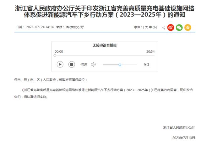 日前,浙江出臺(tái)《浙江省完善高質(zhì)量充電基礎(chǔ)設(shè)施網(wǎng)絡(luò)體系 促進(jìn)新能源汽車下鄉(xiāng)行動(dòng)方案(2023—2025年)》(下稱《行動(dòng)方案》),根據(jù)《行動(dòng)方案》,浙江要打造全省域暢行無憂、全生命周期服務(wù)管理、全場(chǎng)景豐富多彩的新能源汽車下鄉(xiāng)“浙江模式”。