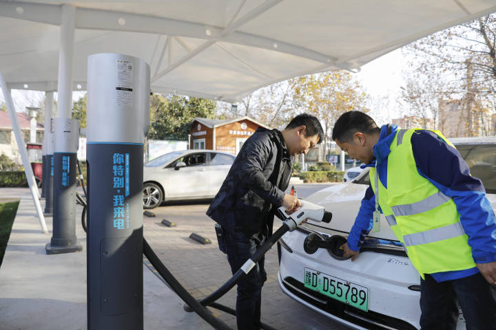 市民使用充電樁 來源:新華社