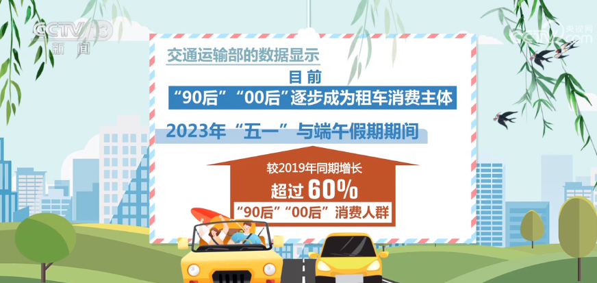 交通運輸部的數(shù)據(jù)顯示,目前“90后”“00后”逐步成為租車消費主體,今年“五一”與端午假期期間,“90后”“00后”消費人群較2019年同期增長超過60%,在全部消費群體中占比過半。新能源汽車,設計年輕化、時尚化,契合了年輕人這一主力消費群體的消費習慣。相關統(tǒng)計顯示,截至目前,國內新能源車輛租賃訂單2023年比2022年同期上漲了317%。