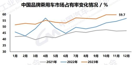 在乘用車(chē)市場(chǎng)中,中國(guó)品牌占比持續(xù)提升。11月,中國(guó)品牌乘用車(chē)共銷(xiāo)售155.6萬(wàn)輛,同比增長(zhǎng)37.9%,占乘用車(chē)銷(xiāo)售總量的59.7%,比上年同期提升5.4個(gè)百分點(diǎn);1-11月,共銷(xiāo)售1297.8萬(wàn)輛,同比增長(zhǎng)23.8%,市場(chǎng)份額為55.8%。“今年以來(lái),中國(guó)品牌乘用車(chē)市場(chǎng)占有率一直維持在50%以上,如今已經(jīng)連續(xù)兩個(gè)月占比接近60%。”陳士華說(shuō)。