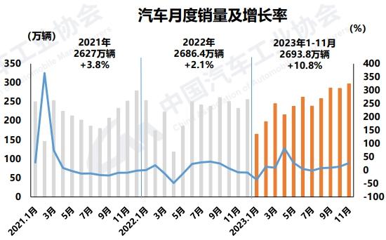 綜合前11個(gè)月,我國(guó)汽車(chē)產(chǎn)銷(xiāo)分別完成2711.1萬(wàn)輛和2693.8萬(wàn)輛,同比分別增長(zhǎng)10%和10.8%,增速較1-10月分別提升2和1.7個(gè)百分點(diǎn)。由此,今年1-11月,汽車(chē)產(chǎn)銷(xiāo)量超過(guò)了去年全年的2702.1萬(wàn)輛和2686.4萬(wàn)輛。