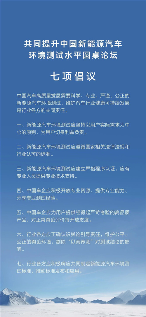 具體來看,長城汽車提出共同提升中國新能源汽車環(huán)境測試水平七項倡議: