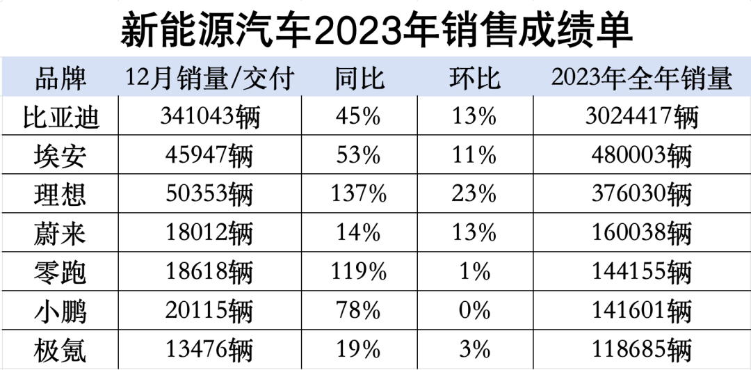 新年第一天,新能源車企紛紛交出2023年成績(jī)單,備受市場(chǎng)關(guān)注的中國(guó)新能源汽車年度銷量排名隨之揭曉。