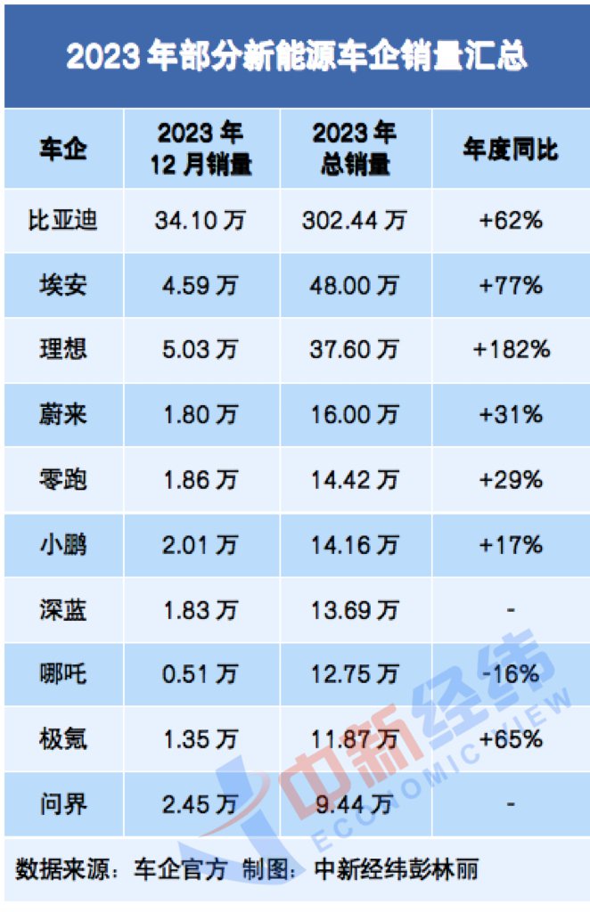 近日,中國(guó)多家新能源車企公布了2023年12月以及2023年全年的交付數(shù)據(jù)。