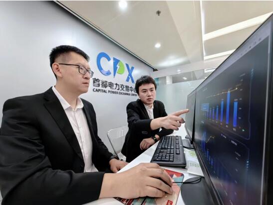 圖為首都電力交易中心工作人員對運(yùn)營數(shù)據(jù)進(jìn)行分析。
