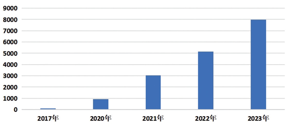 2017-2023年新上牌新能源車數(shù)量對(duì)比(單位:輛)