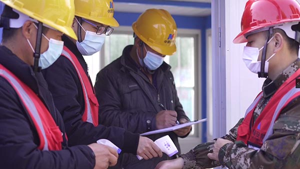 疫情防控阻擊戰(zhàn)打響至今,項目部臨時黨委始終深入貫徹落實黨中央、國務(wù)院及上級公司相關(guān)決策部署,采取了一系列應(yīng)對措施,上下一盤棋,毫不放松抓緊抓實抓細疫情防控及復(fù)工復(fù)產(chǎn)工作,切實履行央企擔(dān)當,全力筑牢安全防線。項目部臨時黨委一班人“逆行”而上,提前到崗,保障4000個醫(yī)用口罩、5臺背式噴霧器、200公斤84消毒液、14把紅外式體溫槍及10套防護服等防疫物資到位;復(fù)工前后,共分發(fā)1000余份防疫物資,測溫2682人次,全面消殺132次。工作中形成項目部到工地現(xiàn)場兩點一線的的閉環(huán)管理,嚴格落實戴口罩、每日2次體溫測量、2次噴霧消毒、不聚集、分餐吃等防疫相關(guān)規(guī)定,密切關(guān)注人員身體健康狀況并做好記錄;制作、張貼防護宣傳標語50張、橫幅16條、防控知識手冊150本,不間斷開展防治知識宣教,切實筑牢阻止疫情侵襲的銅墻鐵壁。