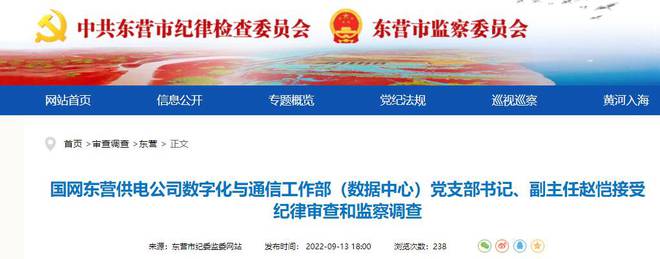 據(jù)廣饒縣紀委監(jiān)委消息:國網(wǎng)東營供電公司數(shù)字化與通信工作部(數(shù)據(jù)中心)黨支部書記、副主任趙愷涉嫌嚴重違紀違法,目前正接受中共國網(wǎng)東營供電公司紀委紀律審查和廣饒縣監(jiān)委監(jiān)察調查。