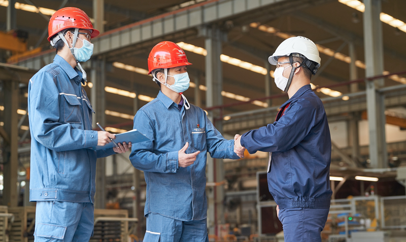 南方電網(wǎng)廣東廣州供電局客戶經(jīng)理了解用戶生產(chǎn)用能需求,制定用能方案。(何維 攝)
