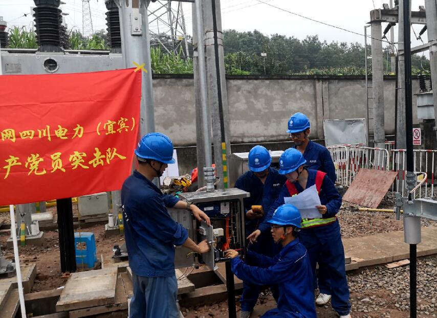 本次擴(kuò)建工作時(shí)間緊、任務(wù)重,國網(wǎng)宜賓供電公司變電運(yùn)檢中心特別組織了電氣試驗(yàn)、變電一次、變電二次等專業(yè)共產(chǎn)黨員20余人組成突擊隊(duì)奔赴現(xiàn)場,搶時(shí)間、趕進(jìn)度,加班加點(diǎn)作業(yè)。烈陽當(dāng)空,隊(duì)員們服著防暑降溫藥品,趁著工作間隙灌幾口水,鏖戰(zhàn)高溫;陰雨連綿,隊(duì)員搭起一塊塊木板作“雨棚”繼續(xù)奮戰(zhàn);夜幕降臨,隊(duì)員們又點(diǎn)上一盞盞臨時(shí)照明挑燈夜戰(zhàn)。