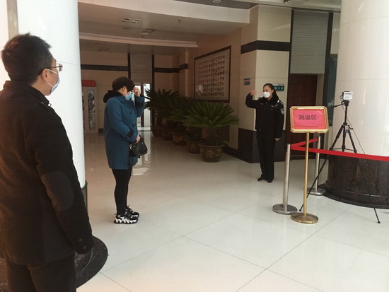 這是新冠肺炎疫情期間,在國網(wǎng)甘肅劉家峽水電廠辦公樓,該廠保衛(wèi)人員佟麗鑫耐心細(xì)致地進(jìn)行辦公樓進(jìn)出管理工作。