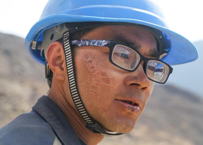 他所在的這支施工隊(duì)已經(jīng)有兩名工人因?yàn)檫m應(yīng)不了高反而離開。“眼鏡”很頑強(qiáng),盡管一樣有輕微高反,但他都堅(jiān)持下來了。紫外線輻射、雪風(fēng)沖刷,臉上滿是溝壑,但意志堅(jiān)如磐石。正是像“眼鏡”一樣最可愛、最光榮、最普通的電網(wǎng)建設(shè)者,撐起了四川甘孜巴塘高原藏區(qū)百姓的光明夢、致富夢、幸福夢。