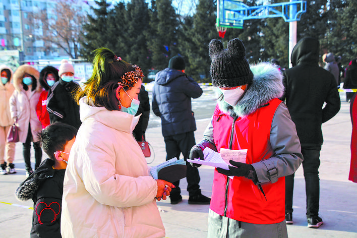 1月16日、17日,他們分別來(lái)到甘南鎮(zhèn)第一中學(xué)、第四小學(xué)和第三中學(xué)三個(gè)核酸檢測(cè)點(diǎn)。在現(xiàn)場(chǎng),他們提前拉起警戒線、搬運(yùn)登記用的桌椅,幫助醫(yī)護(hù)人員穿好防護(hù)服,維持現(xiàn)場(chǎng)秩序,幫助做核酸檢測(cè)的群眾填寫(xiě)登記單……他們?cè)谑彝獾膰?yán)寒中一站就是近10個(gè)小時(shí),只能在中午吃盒飯的時(shí)候短暫休息。從1月16日7時(shí)~17日17時(shí),他們共協(xié)助完成1萬(wàn)余名居民的核酸檢測(cè)工作。