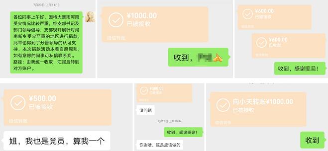 據(jù)悉,河南遭遇特大暴雨,多地發(fā)生嚴(yán)重洪澇災(zāi)害。河南省輝縣市常村鎮(zhèn)氈匠屯村遭受洪澇災(zāi)害,農(nóng)作物受災(zāi),經(jīng)濟受損,村民們生活與人身安全受到影響。這些天,國網(wǎng)信通產(chǎn)業(yè)集團國電通規(guī)劃與計劃管理業(yè)務(wù)事業(yè)部黨支部黨員們每天都留意新聞報道,關(guān)注河南災(zāi)情,希望能為河南做點什么。得知輝縣市常村鎮(zhèn)氈匠屯村受災(zāi)情況后,迅速響應(yīng),通過河南籍員工與當(dāng)?shù)攸h組織取得聯(lián)系,發(fā)出捐款倡議。倡議一經(jīng)發(fā)出,便得到了黨支部黨員、發(fā)展對象和員工的積極參與,迅速募捐到了11800元善款。在輝縣市常村鎮(zhèn)氈匠屯村遭受洪災(zāi)的關(guān)鍵時刻,迅速將善款打給他們,為當(dāng)?shù)匕傩仗峁┰?/p>