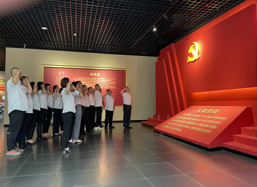 在參觀“五四運動和大革命時期大青山革命斗爭”展廳時,一艘永載中國革命史冊的紅船映入眼簾,黨支部副書記田清華同志以《紅色火種 曙光普照》為題,為大家講授了一堂生動的黨課。他提到,我們對中國共產(chǎn)黨建黨101周年的最好紀念,就是傳承和發(fā)揚黨的光榮歷史和優(yōu)良傳統(tǒng),黨員干部們要無比珍惜“先進基層黨組織”的榮譽稱號,并將榜樣的力量轉(zhuǎn)化為砥礪奮進、披荊斬棘的強大動力,要以飽滿的熱情,高昂的姿態(tài)不斷創(chuàng)造新的業(yè)績、鑄就新的輝煌!參觀結(jié)束后,全體黨員佩戴黨徽,舉起右拳,面對莊嚴肅穆的黨旗重溫入黨誓詞。回聲嘹亮的宣誓,激勵鞭策著我們——用無悔鐫刻為民服務(wù)的忠誠,用責任詮釋行業(yè)擔當?shù)氖姑?