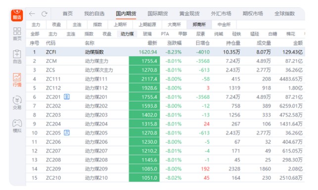 漲瘋的煤炭夜盤突然暴跌,各期限的動(dòng)力煤期貨全線跌停。其實(shí),19日白天,動(dòng)力煤主力合約最后十分鐘就出現(xiàn)了快速跳水,其漲幅從10.47%跳水至4.52%。
