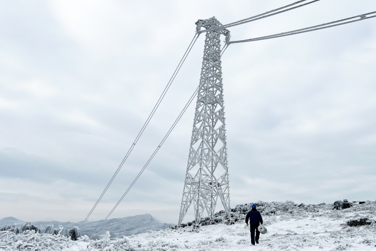 近日,南網(wǎng)超高壓公司曲靖局作業(yè)人員前往觀冰塔位開展防冰相關(guān)作業(yè),隨時做好融冰準(zhǔn)備。 戴永平 張壘 攝