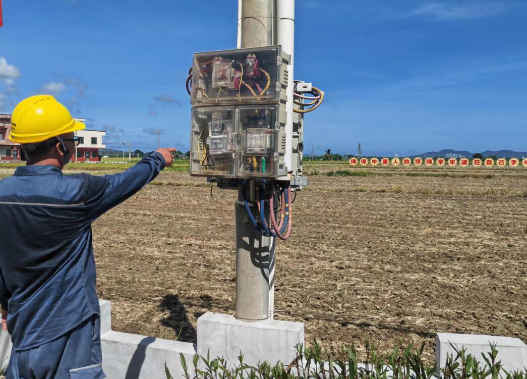 南方電網(wǎng)廣東陽(yáng)江陽(yáng)西供電局儒洞供電所客戶經(jīng)理對(duì)田間地頭的線路和用電設(shè)備進(jìn)行重點(diǎn)排查。