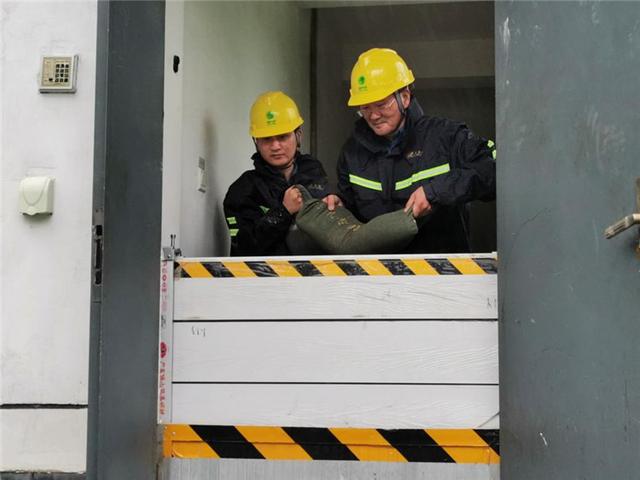 國網山東濟南供電公司員工加固110千伏廣場地下變電站防水擋板。